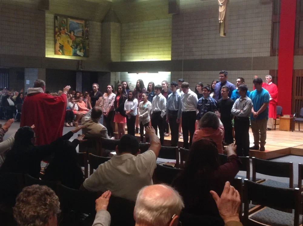 Students who attend Community of Saints or another Catholic school are welcome to participate in our program. To do so, please register at St. Matthew’s Faith Formation. Catholic school students are required to attend class one Wednesday evening each month from October to April. Additional requirements are explained at the Confirmation Launch Mass and meeting held in November, which parents/guardians attend with their Confirmation candidates.
